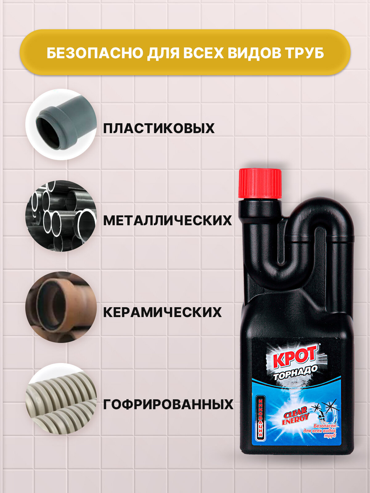 Крот Торнадо гель, средство для прочистки труб, средство от засоров, в трубах, прочистка труб, крот для труб, очиститель труб