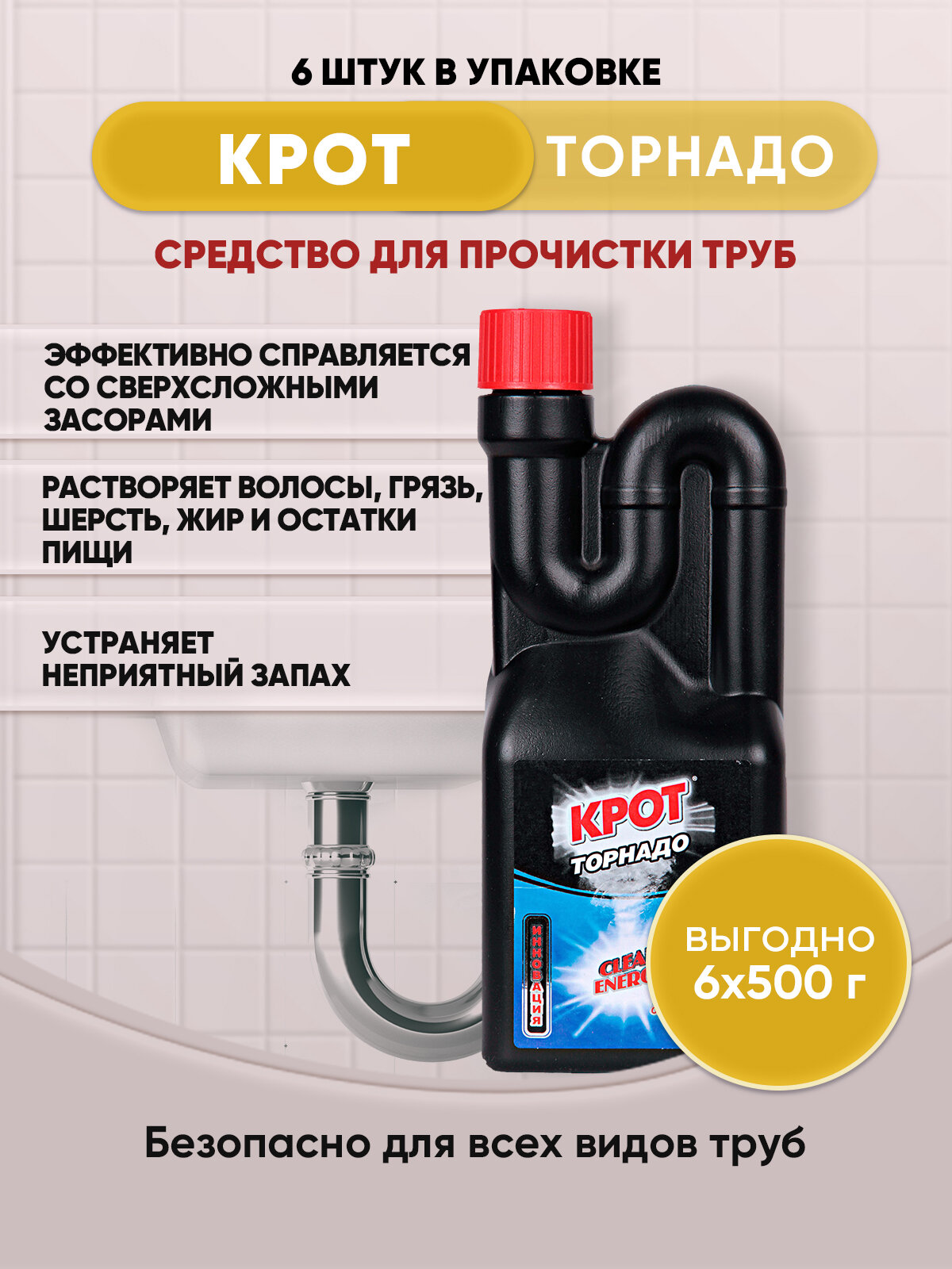 Крот Торнадо гель 0,5 л, средство для прочистки труб, средство от засоров, средство от засора в трубах, прочистка труб, крот для труб