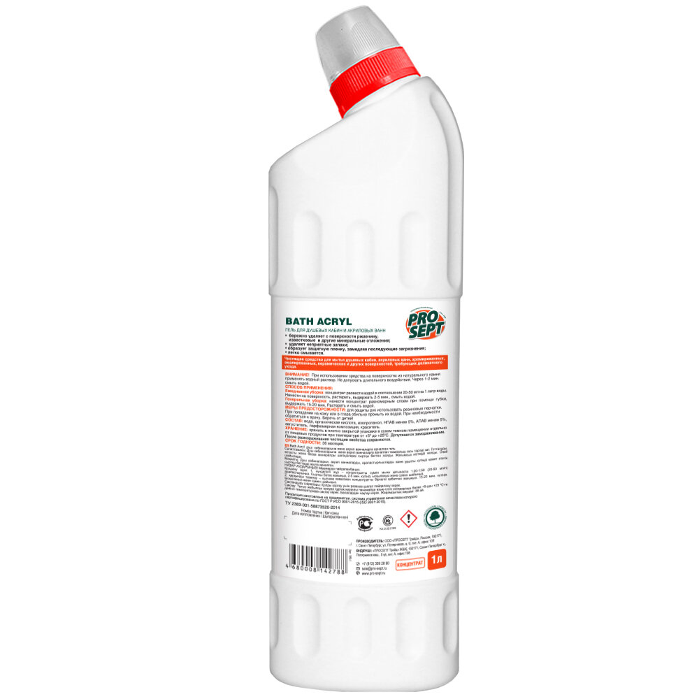 PROSEPT гель для чистки акриловых ванн и душевых кабин Bath Acryl, 0.75 л