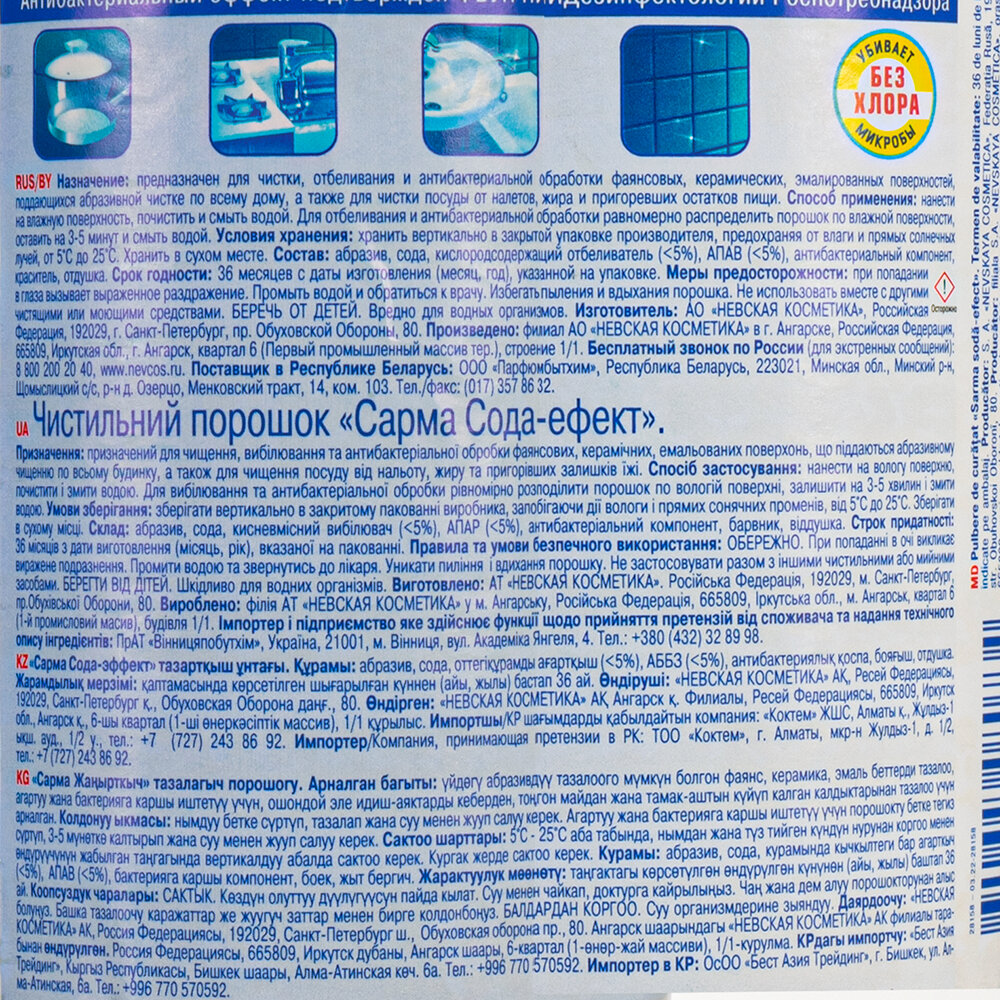 Ниже Вы можете прочитать отзывы на Sarma Чистящий порошок Антиржавчина 400 г, ознакомится с подробными характеристиками, посмотреть интересные обзоры и фотографии на Sarma Чистящий порошок Антиржавчина 400 г.