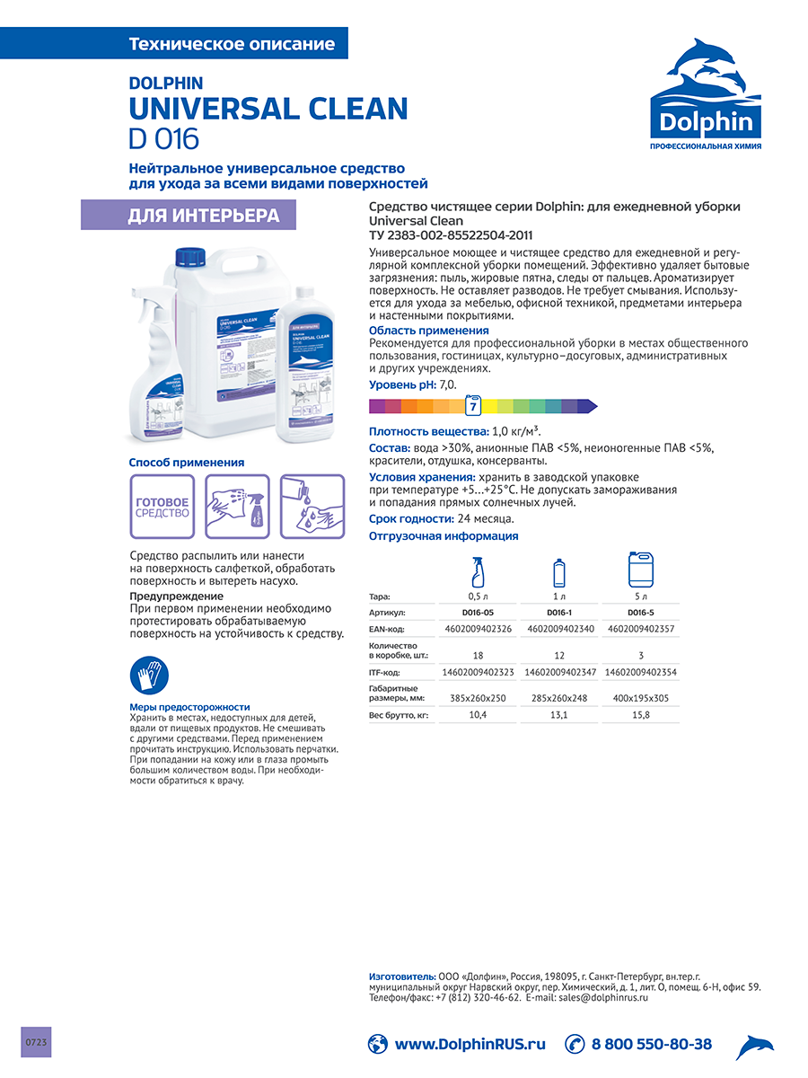 Универсальное средство для комплексной уборки помещений UNIVERSAL CLEAN 0,5 литра интересное: