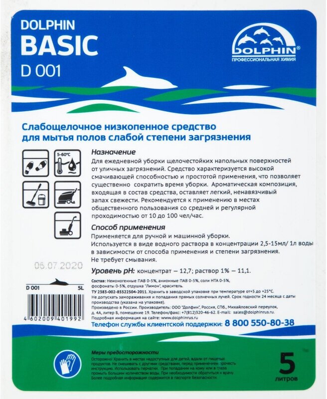 Ниже Вы можете прочитать отзывы на Промышленная химия Dolphin Basic, 5л, средство для мытья полов слабой степени загрязнения, концентрат, ознакомится с подробными характеристиками, посмотреть интересные обзоры и фотографии на Промышленная химия Dolphin Basic, 5л, средство для мытья полов слабой степени загрязнения, концентрат.