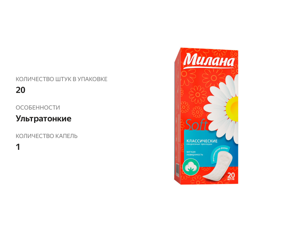 Милана Прокладки ежедневные «Милана» Classic Soft, 20 шт.