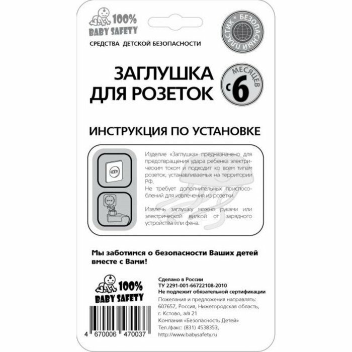 Заглушки для розеток от детей 100% Baby Safety 4670006471492