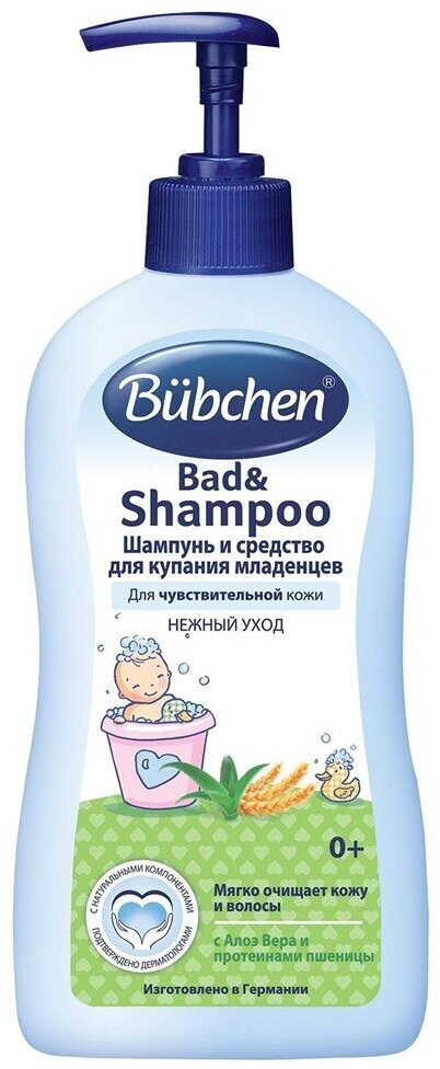 Bubchen Средство для купания младенцев, Для чувствительной кожи, 400 мл, 2 шт.