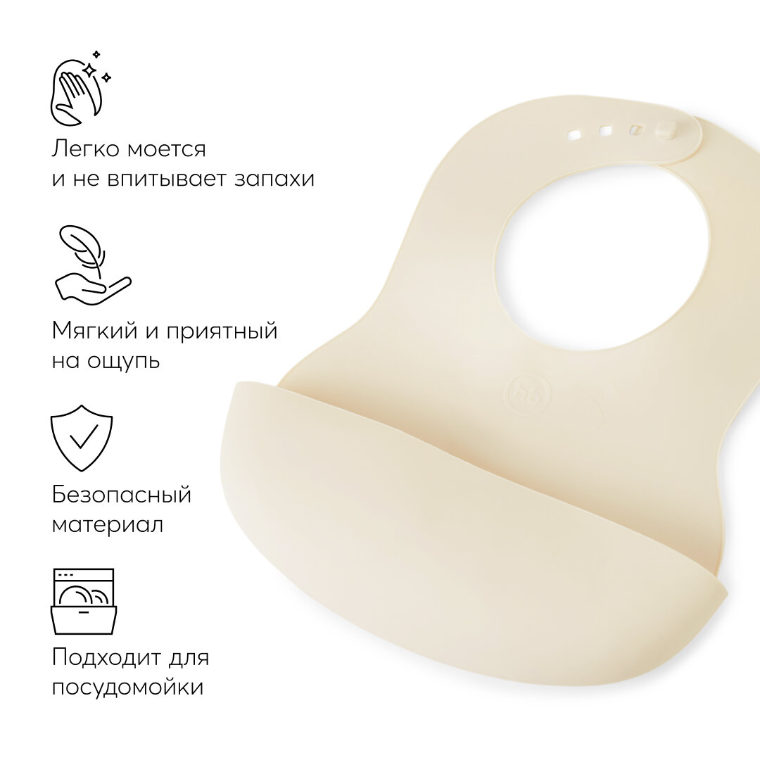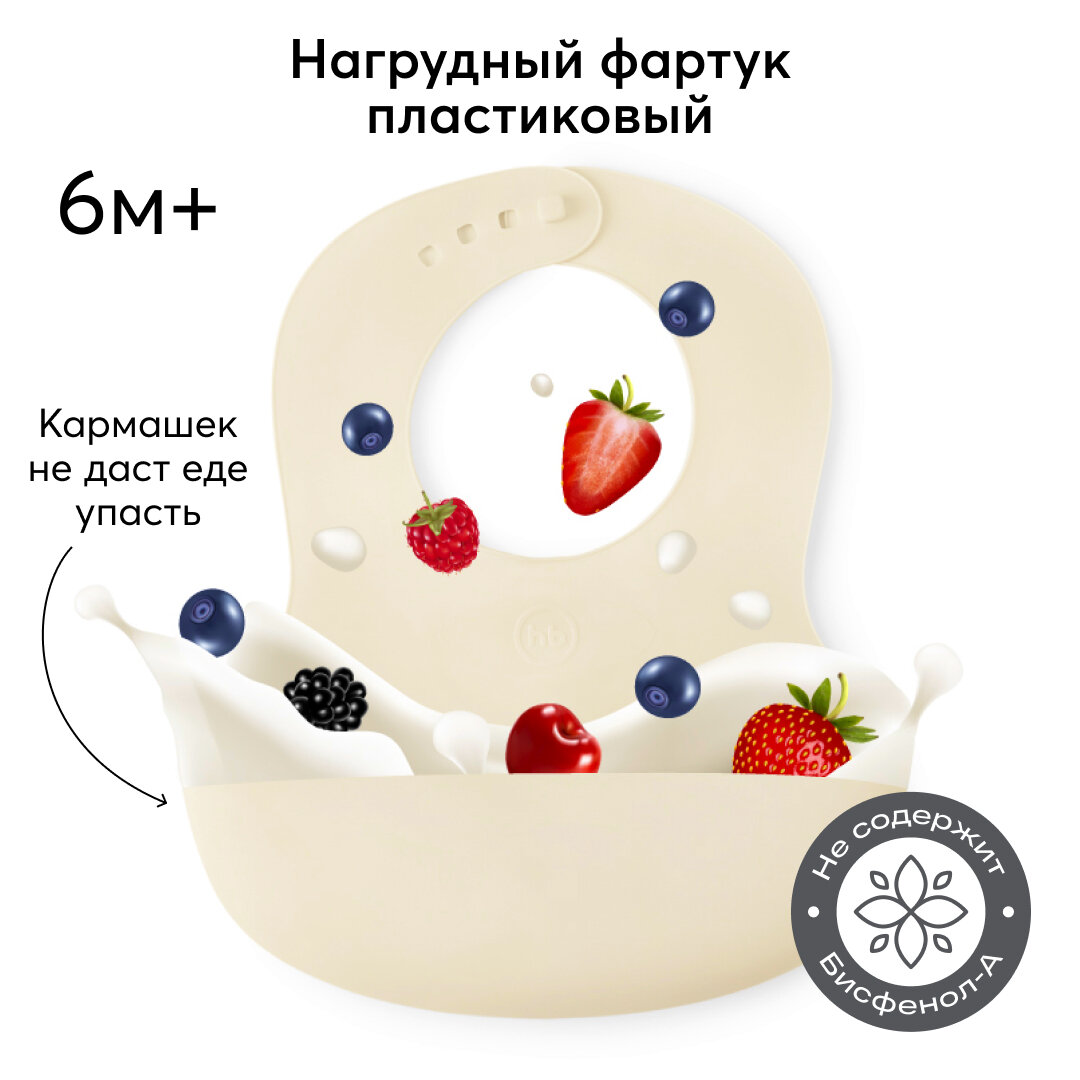 16000, Нагрудник для кормления Happy Baby, слюнявчик пластиковый с кармашком, молочный