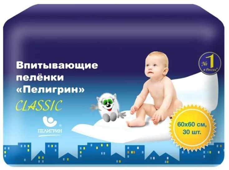 Пеленки впитывающие Пелигрин 60х60см, Classic, 30шт/уп (М60х60/30С), 1 шт