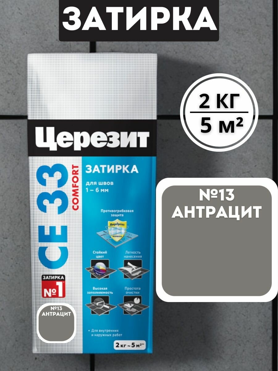 Купить Затирка для швов плиточных облицовок до 6мм Церезит СЕ 33 Антрацит №13, 2кг