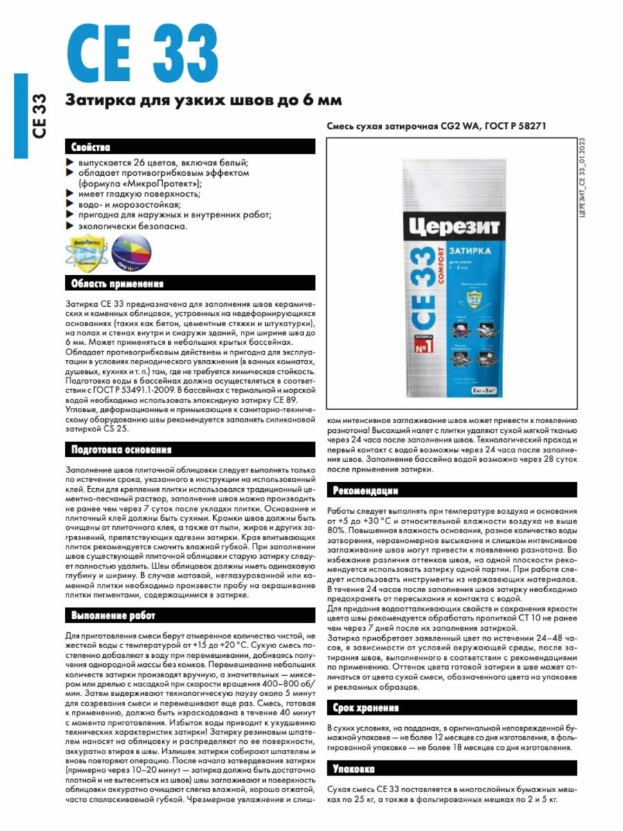 | Плюсы: | Затирка очень качественная. Церезит, всё-таки |