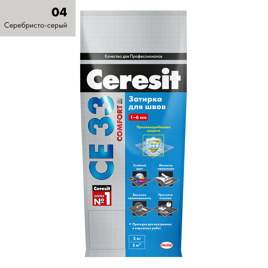 Затирка Ceresit CE 33 Comfort №04, серебристо-серая, 2 кг
