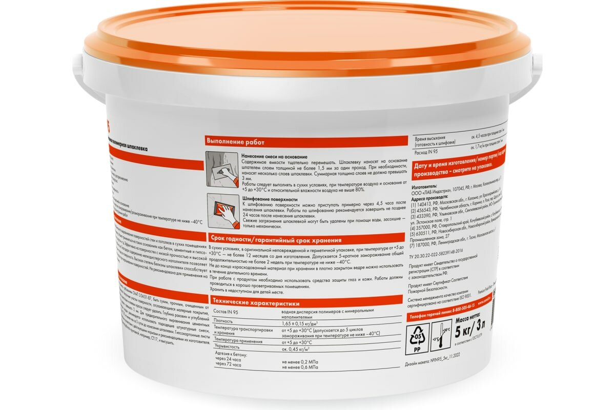 Шпаклевка финишная полимерная Ceresit IN 95, готовая, 5 кг