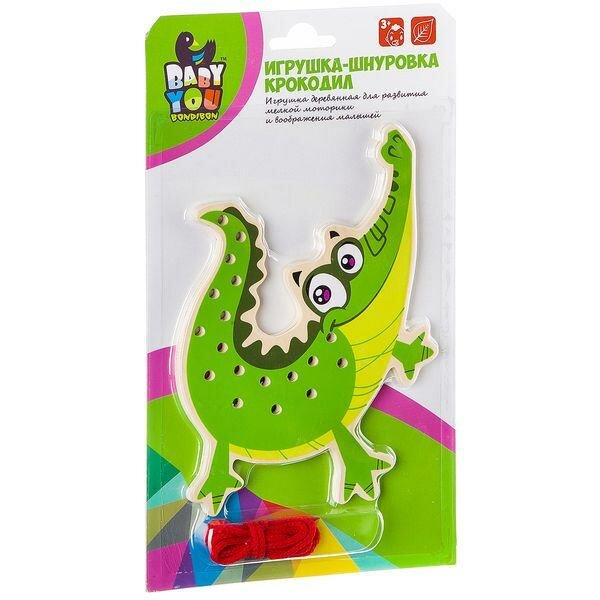Игр. дерев., Шнуровка крокодил, Bondibon, BOX 20x16x1 см., арт. TKF010 ВВ2190 интересное: