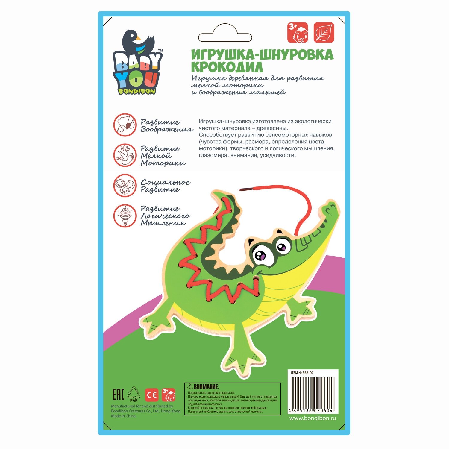 Купить Игр. дерев., Шнуровка крокодил, Bondibon, BOX 20x16x1 см., арт. TKF010 ВВ2190