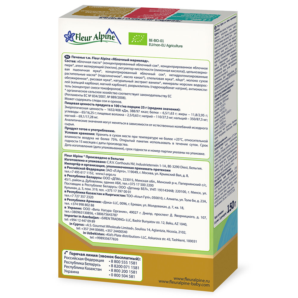 Печенье детское Fleur Alpine Organic (Флёр Альпин Органик) Яблочный мармелад с 18 мес 150 г интересное: