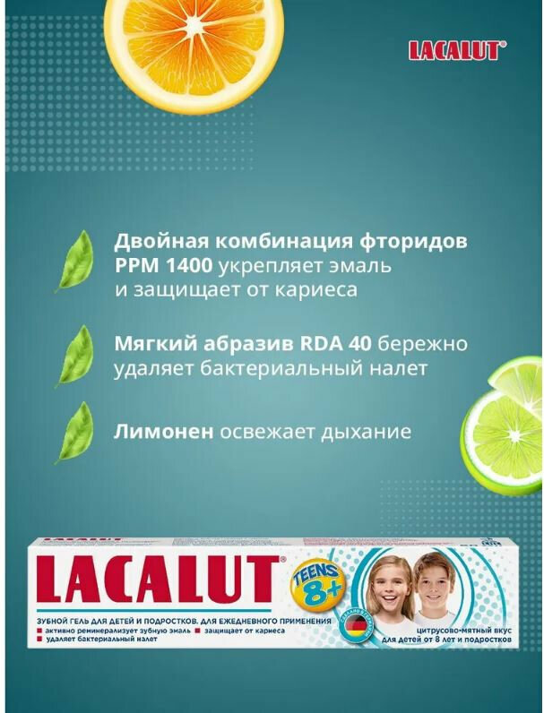 Лакалют Тинс - зубной гель для подростков (цитрусово - мятный вкус) с 8-ми лет, 50 мл, 1*24