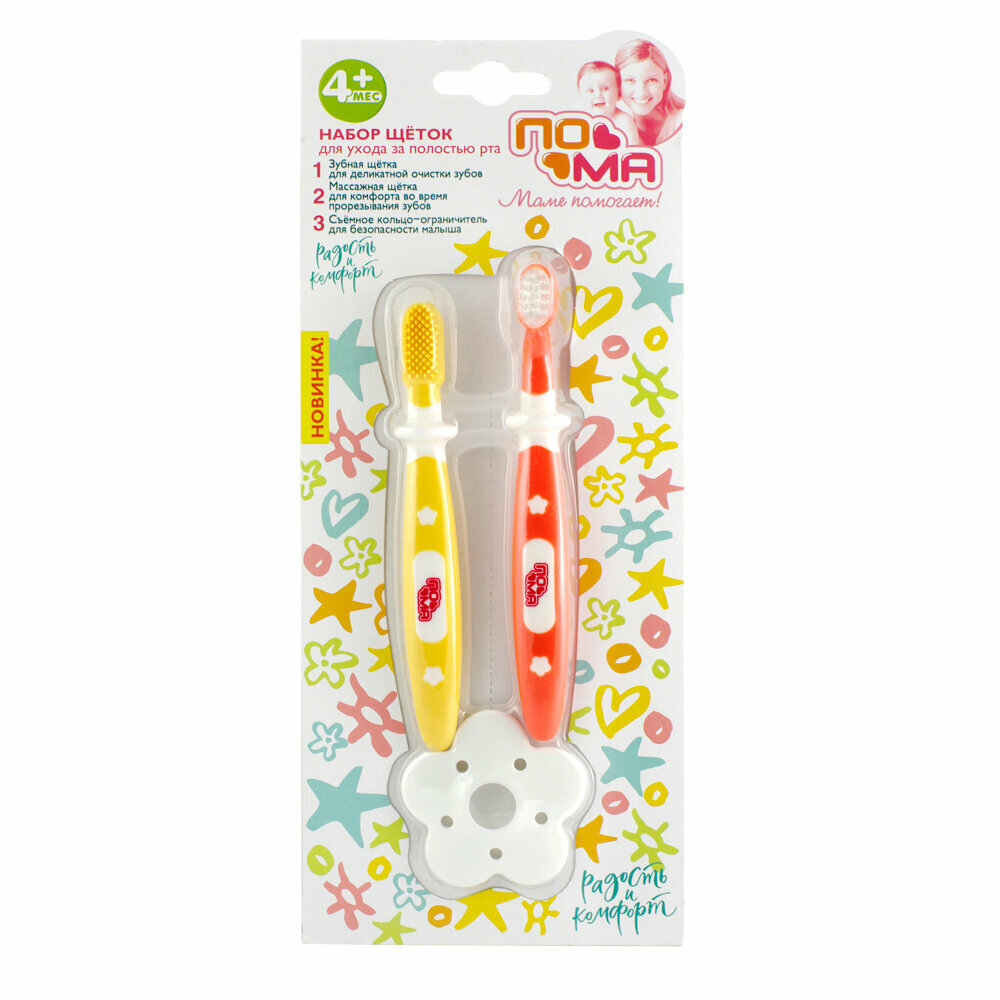 Набор щеток для ухода за полостью рта Пома 2 шт. желтый+соранжевый 4+ мес интересное:
