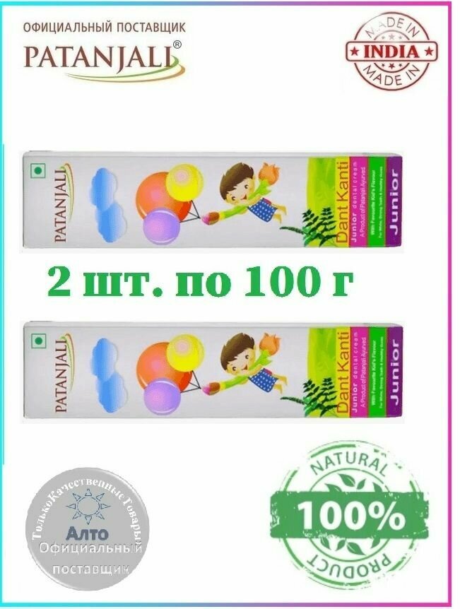 Детская зубная паста Patanjali Dant Kanti Junior,натуральная,укрепление десен,защита полости рта, 2 штуки по 100 г. интересное: