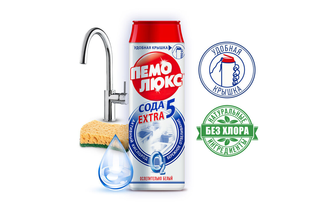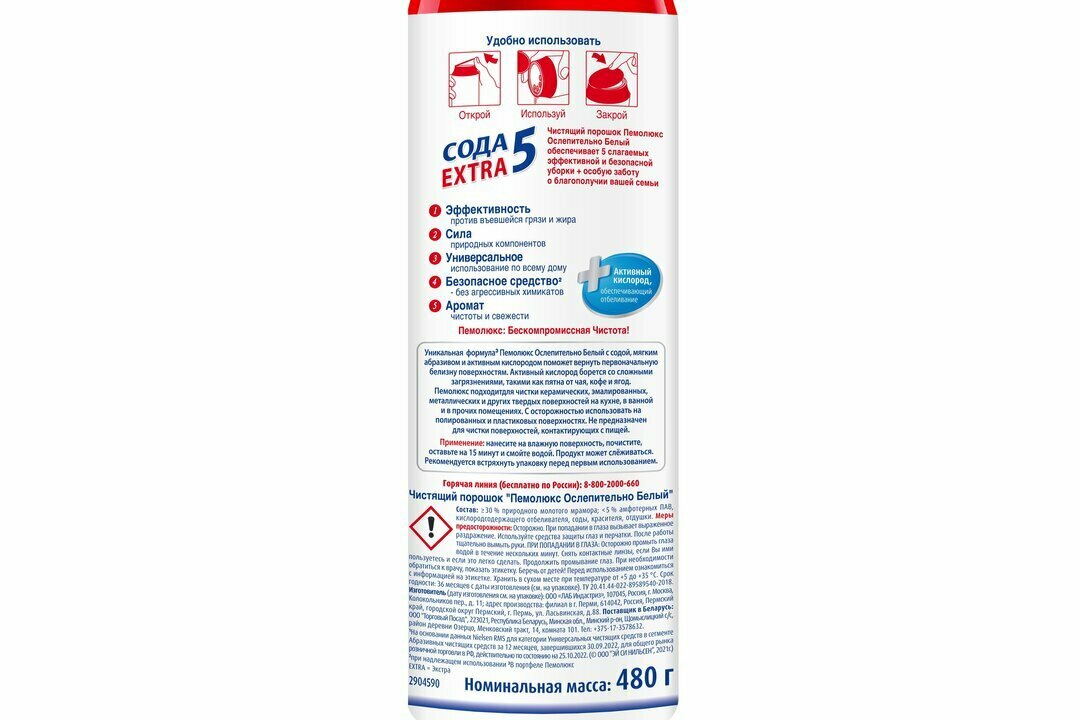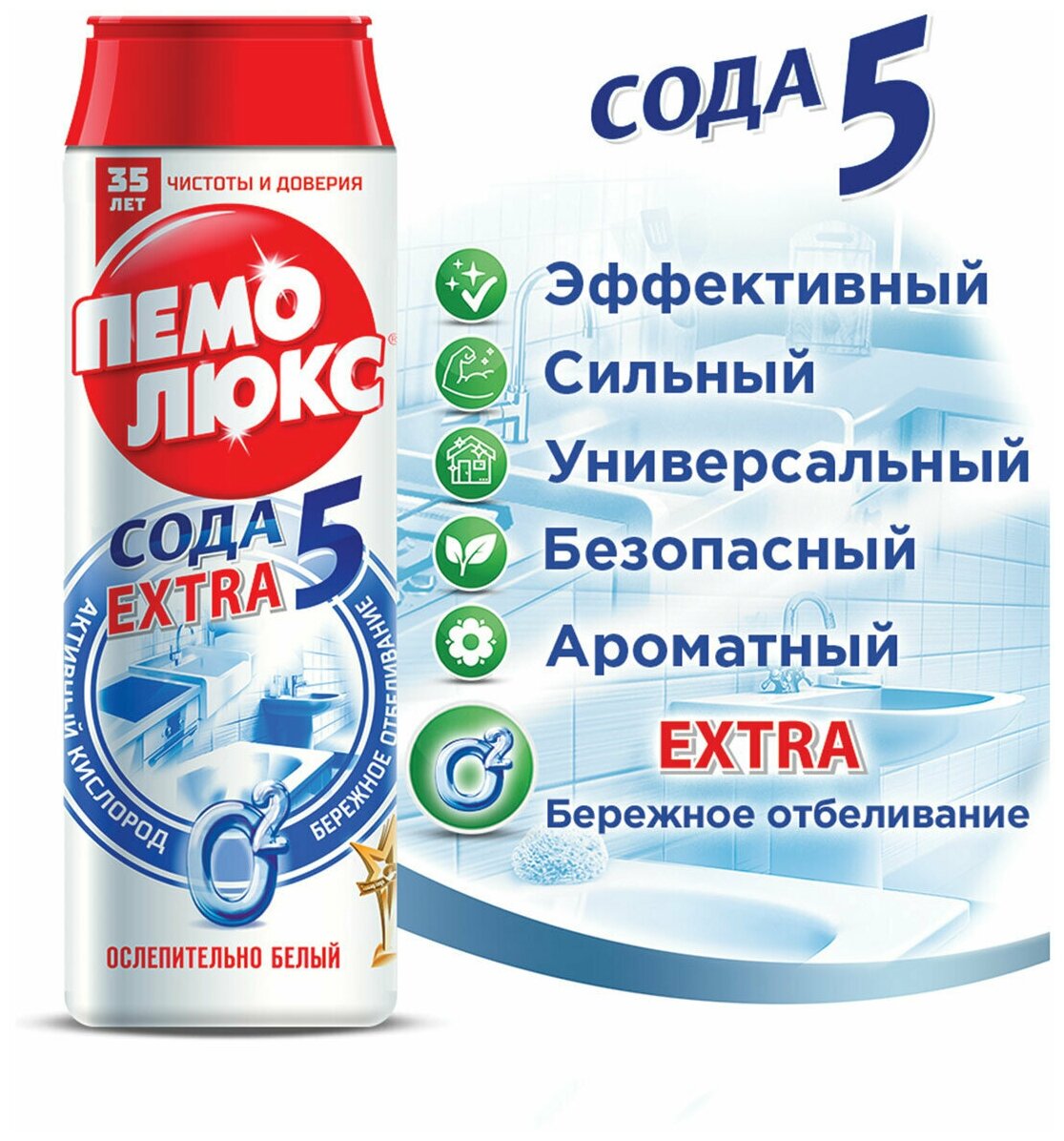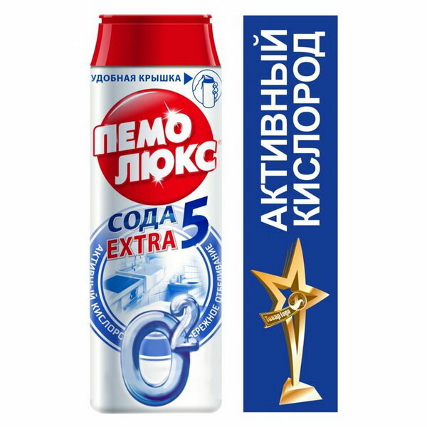 Средство чистящее Пемолюкс "Сода 5 Extra. Ослепительно белый", порошок, 480г (арт. 235535) интересное: