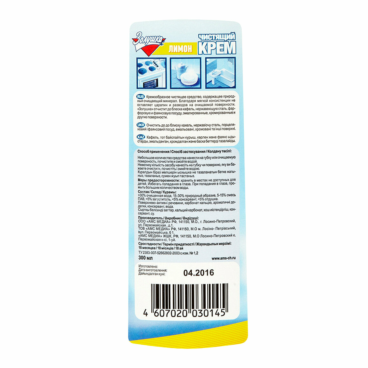 Крем Чистящий, 300 мл, Лимон, Золушка