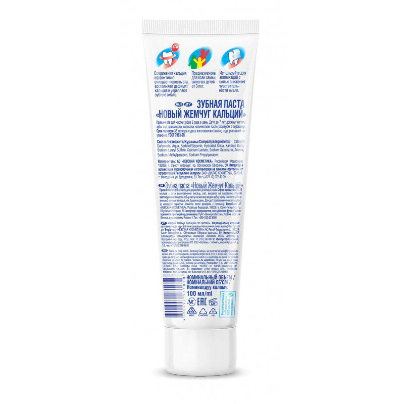 Новый жемчуг Зубная паста 100 мл Кальций комплексная защита от кариеса 17114 603385
