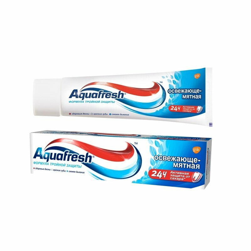 Зубная паста Aquafresh Освежающе-мятная с фтором для тройной защиты полости рта: защита от кариеса, укрепление зубов и свежесть дыхания, 100 мл 2 шт