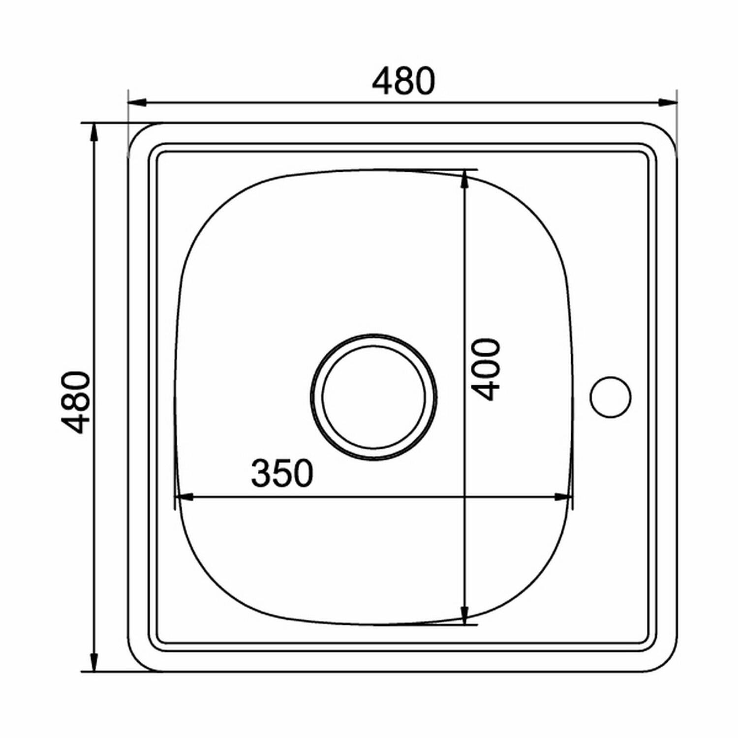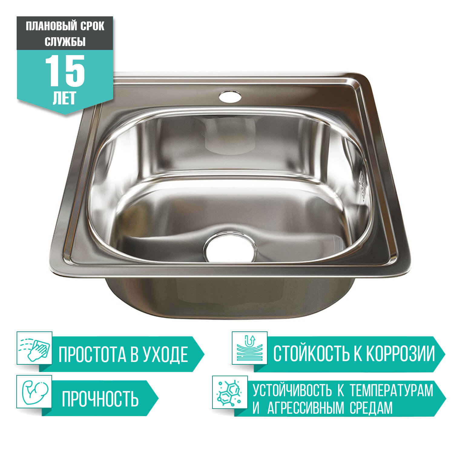 Врезная кухонная мойка Mixline из нержавеющей стали, Квадратная 48х48 см выпуск 3 1/2 глубина 16 см