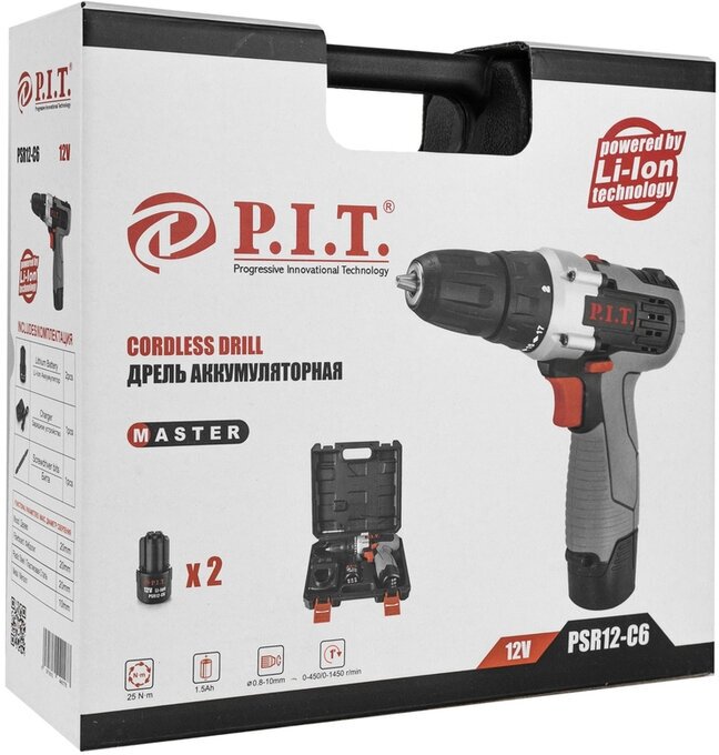 Шуруповерт PSR 12-С6 Мастер (12В,2 Li акк.1,5Ач,25Hм,2ск,быст.заряд.кейс ) P.I.T