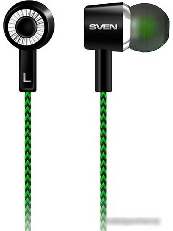 Наушники SVEN E-107, черный-зеленый, внутриканальные стерео 1573802 SV-015404