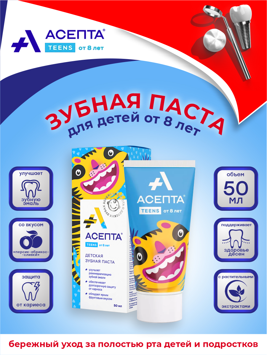 Зубная паста Асепта Teens для детей от 8 лет, 50 мл