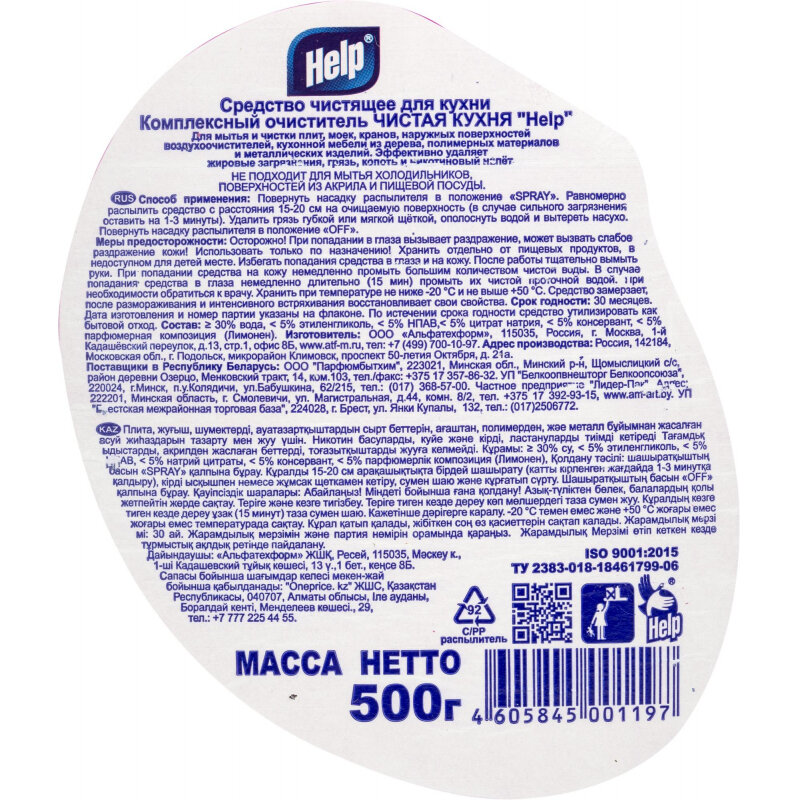 Комплексный очиститель для кухни Help чистая кухня 500 мл интересное: