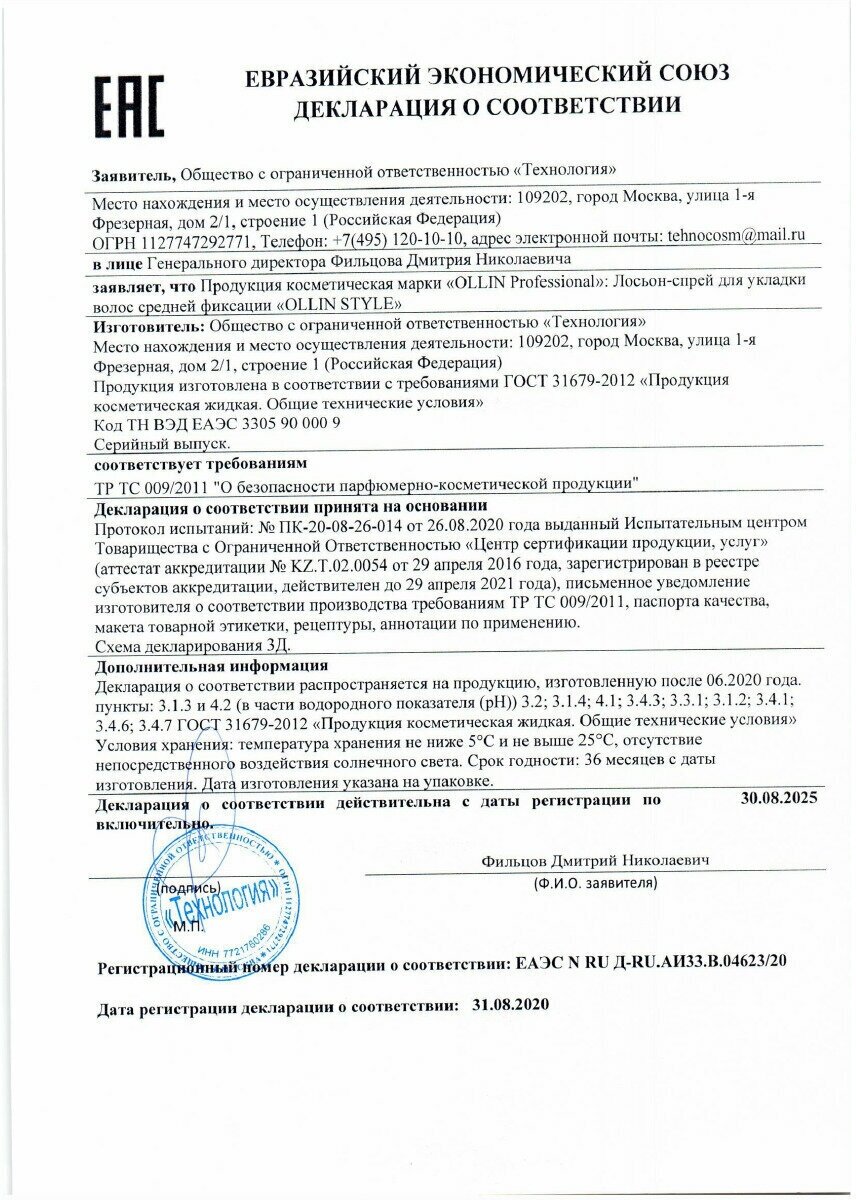 Купить OLLIN STYLE Лосьон-спрей для укладки средней фиксации, 250мл