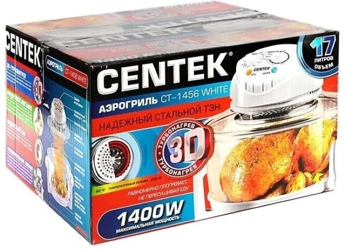 Ниже Вы можете прочитать отзывы на Аэрогриль Centek 12 л, 5 л 1400 Вт, таймер 90 мин, max 250, 2 решетки CT-1456 WHITE, ознакомится с подробными характеристиками, посмотреть интересные обзоры и фотографии на Аэрогриль Centek 12 л, 5 л 1400 Вт, таймер 90 мин, max 250, 2 решетки CT-1456 WHITE.