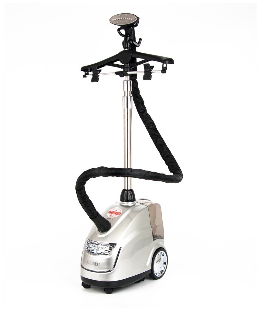 | Плюсы: | Телескопическая стойка регулируется по высоте, для дополнительного удобства. Подача пара равномерная, без брызг или сырых пятен. |
