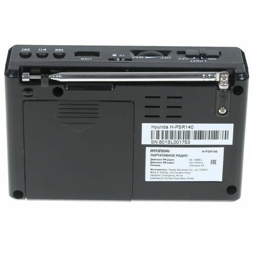 Радиоприемник портативный Hyundai H-PSR140 черный USB microSD