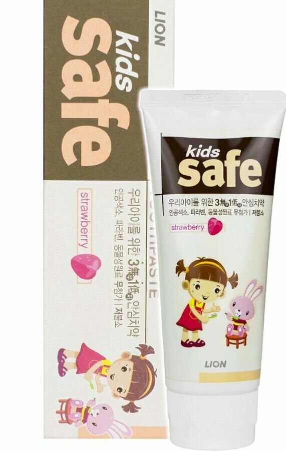Детская зубная паста LION со вкусом клубники KIDS SAFE