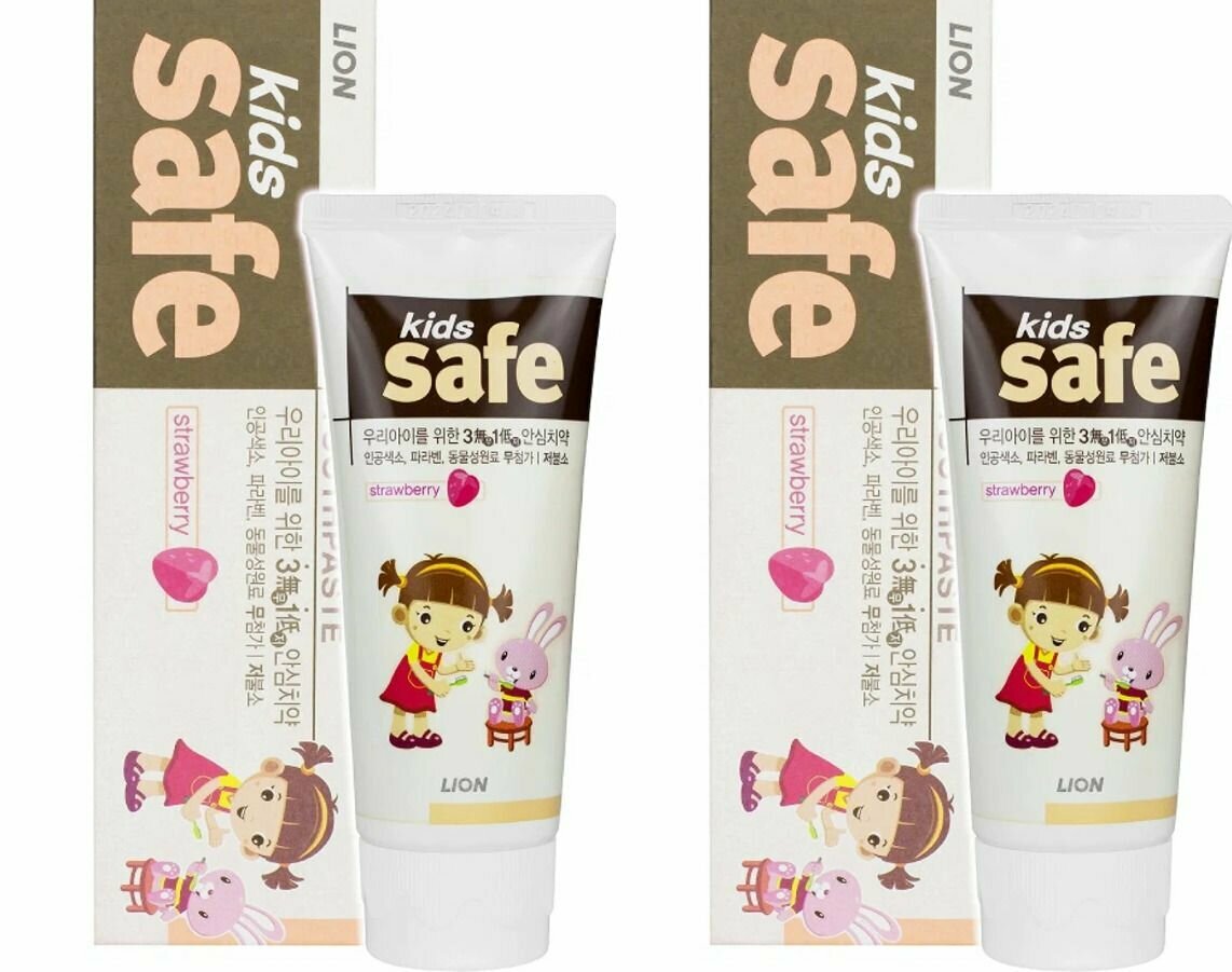 Lion Зубная паста детская Kids Safe, со вкусом клубники, 90 г, 2 шт