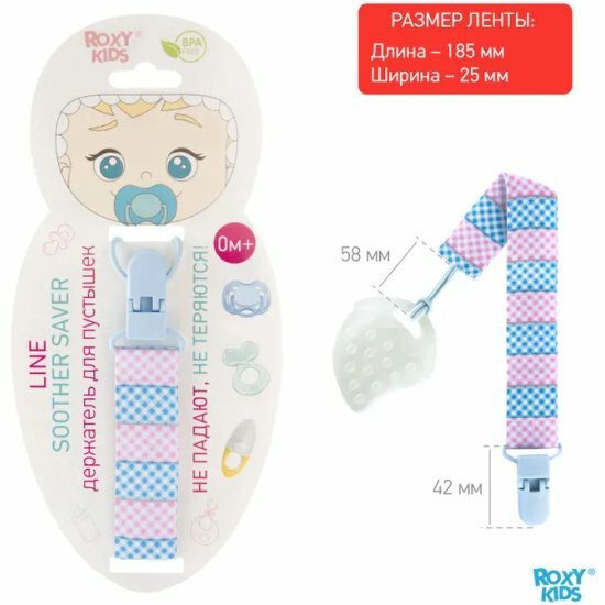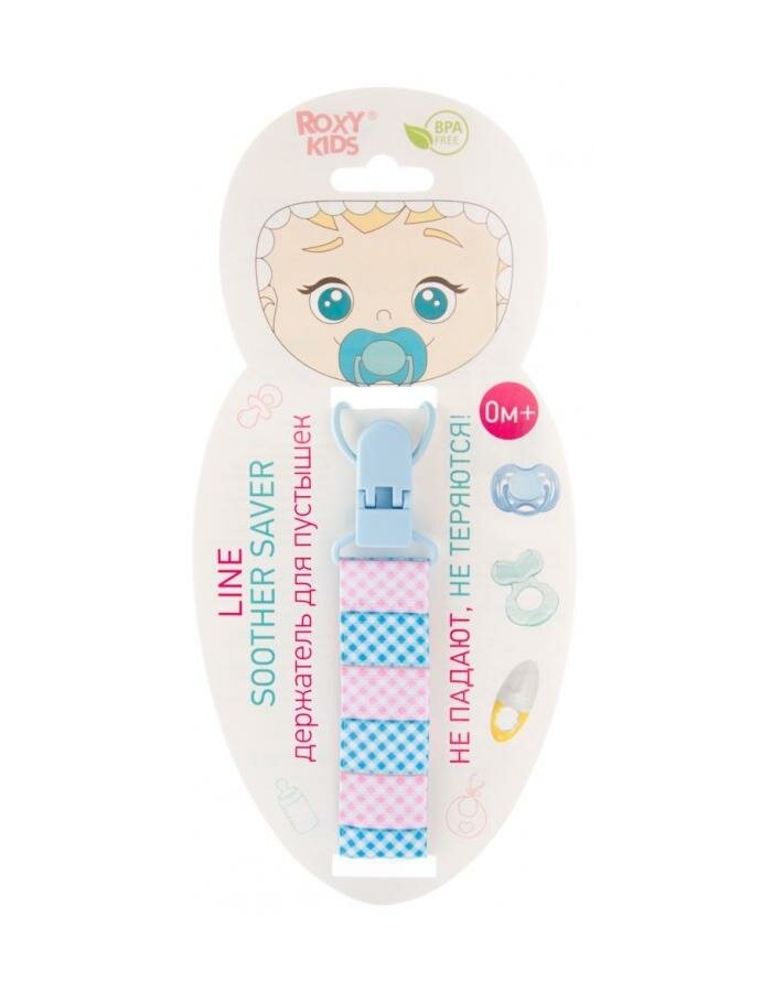 Держатель пустышки Roxy kids Soother Saver, с рождения, голубой-розовый