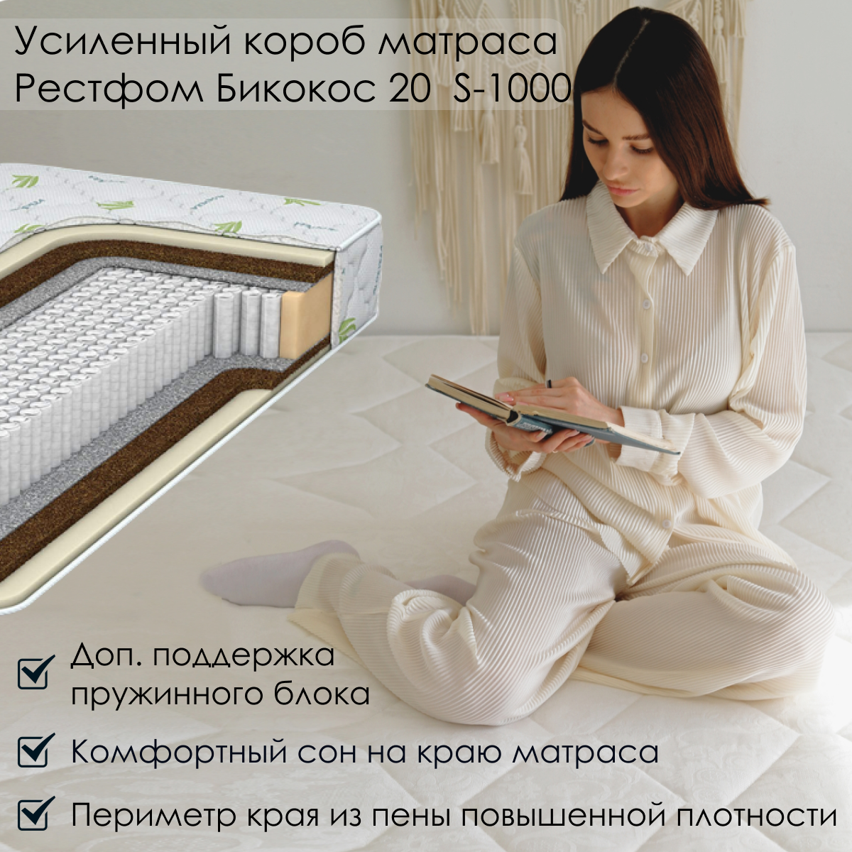 Матрас Everest Рестфом Бикокос 20 S1000 - классическая средняя жесткость, пружины 1000 штук, трикотажный чехол, высокий 23 см 185х200