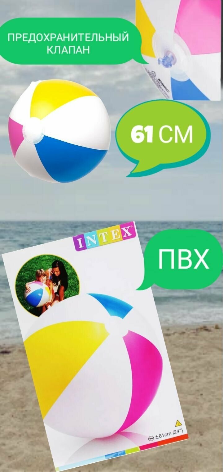 Мяч INTEX «Цветной», пляжный, диаметр 61 см, от 3 лет, 59030NP, разноцветный