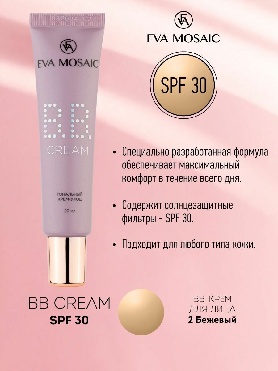EVA MOSAIC Тональный крем-уход BB cream, 20 мл, 02 Бежевый