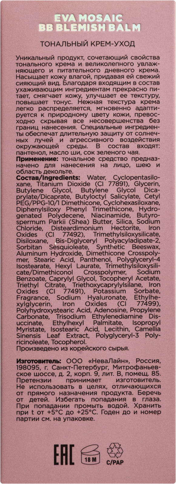 Eva Mosaic Тональный крем -уход BB cream 01 слоновая кость
