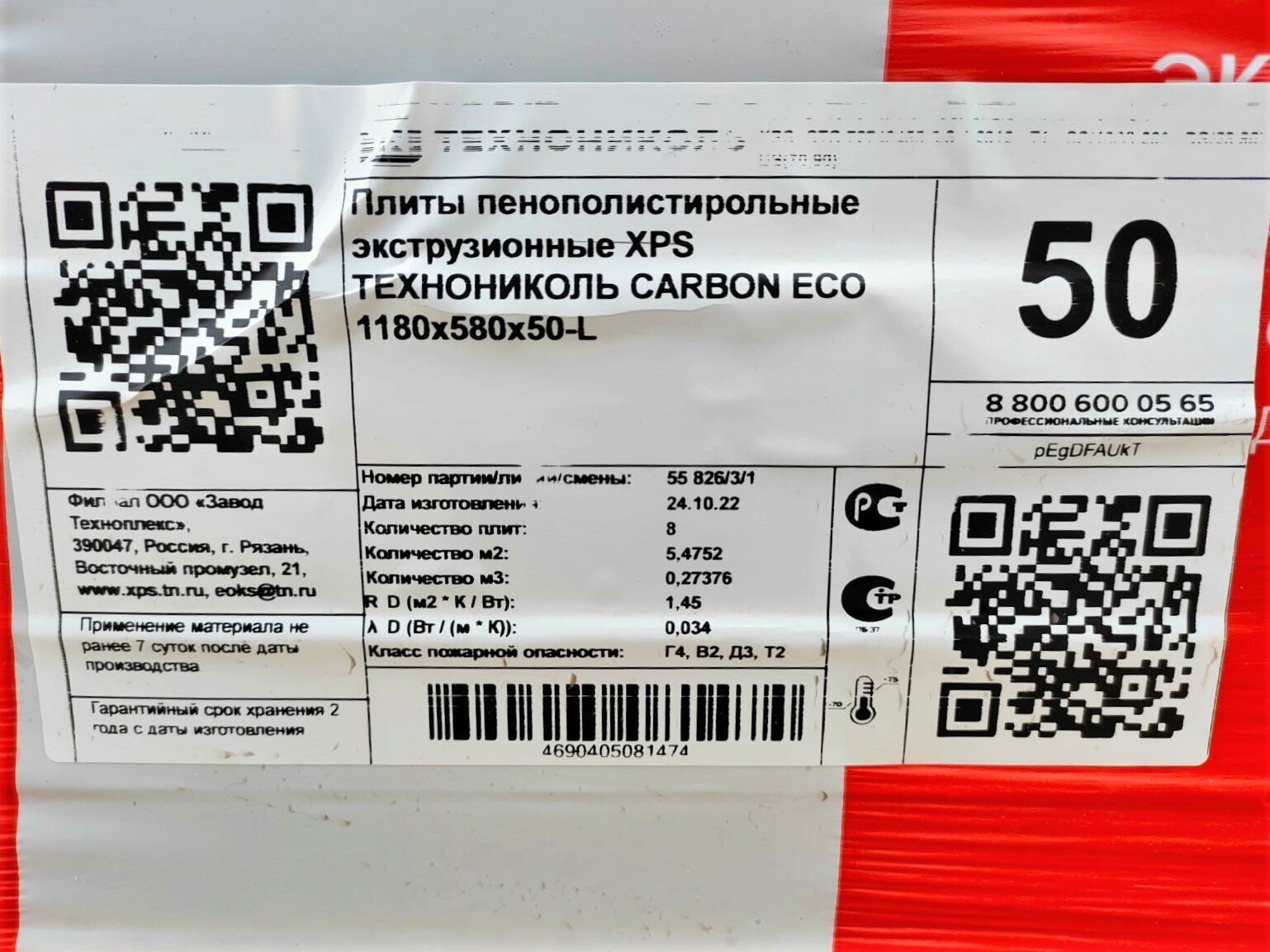 Экструдированный пенополистирол Технониколь XPS CARBON ECO 1180x580x50 мм, 8 плит, 5.47 кв.м TN418318 интересное: