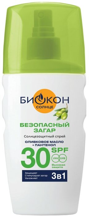 Спрей для безопасного загара биокон SPF 30, Оливковое масло, 160 мл