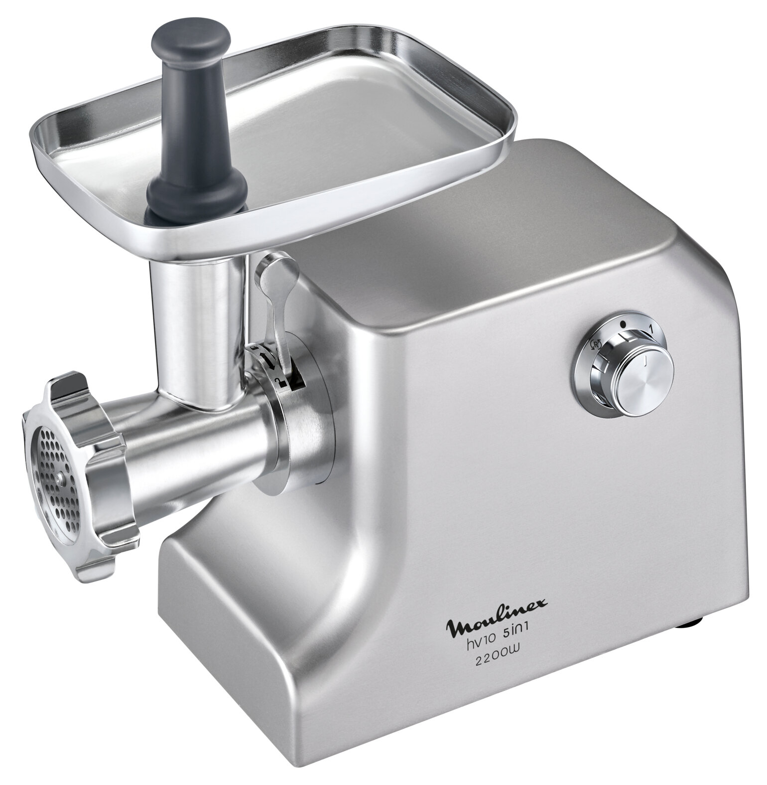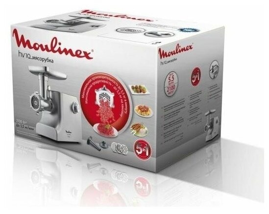 Мясорубка Moulinex HV10 ME856D32 с реверсом, 2100 Вт, 5.5 кг/мин, металлический корпус, 3 решетки, насадка для колбас и кеббе