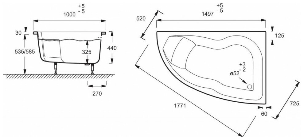 | Дополнительная информация | левосторонняя; возможна установка душевой перегородки |