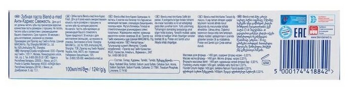 Зубная паста, 100 мл, BLEND-A-MED (Бленд-а-Мед) Анти-кариес "Свежесть"