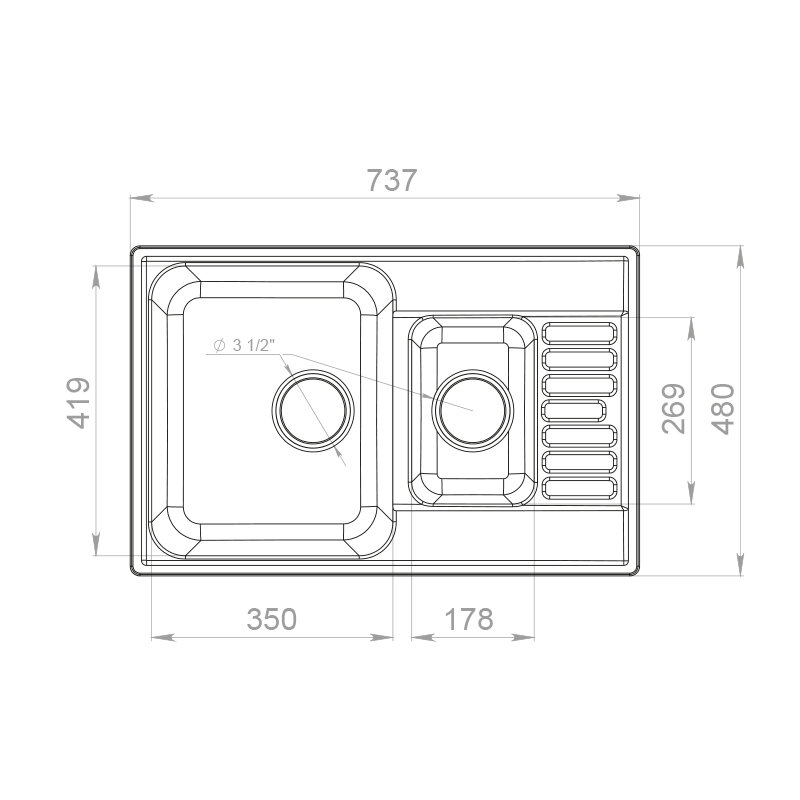 | Диаметр сливного отверстия | 3 1/2 " |