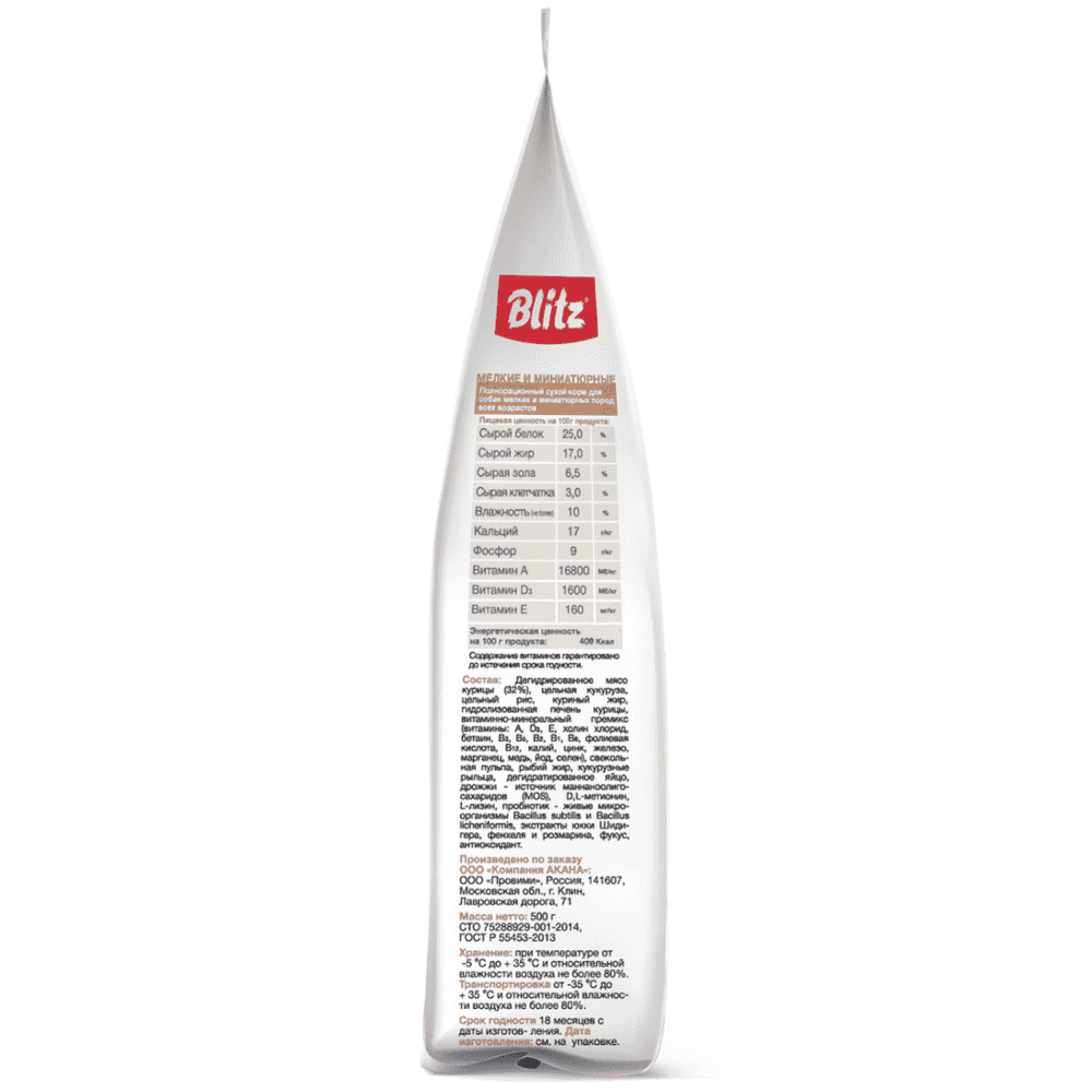 СохранитьBLITZ сух. корм д/собак миниатюрных и мелких пород 500гр интересное: