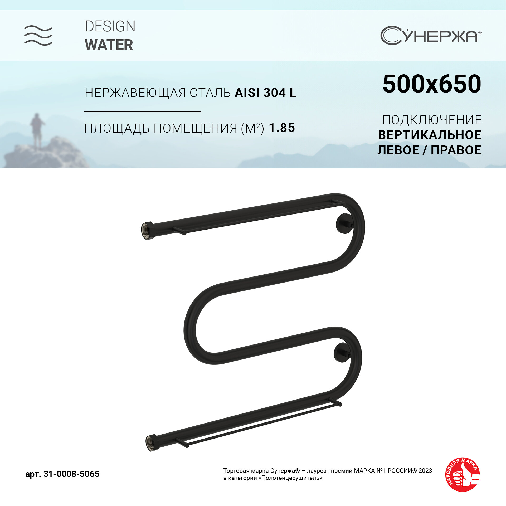 Полотенцесушитель водяной Сунержа 31-0008-5065 М-образный Полотенцесушитель водяной 2П 500х650 мм, Н. Г. 1", матовый черный