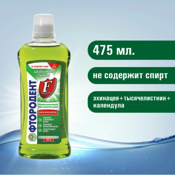 Фтородент Целебные травы Ополаскиватель для полости рта, флакон 475мл / уход за зубами